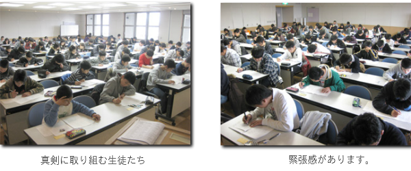 模試では合格判定や偏差値などの詳しい結果がでます。また、当日は試験会場に、各校の生徒が集まり、入試本番さながらの雰囲気の中で試験しています。このような経験を積むことで、入試等の緊張した場面でも、100%に近い実力を発揮できるようになっていきます。